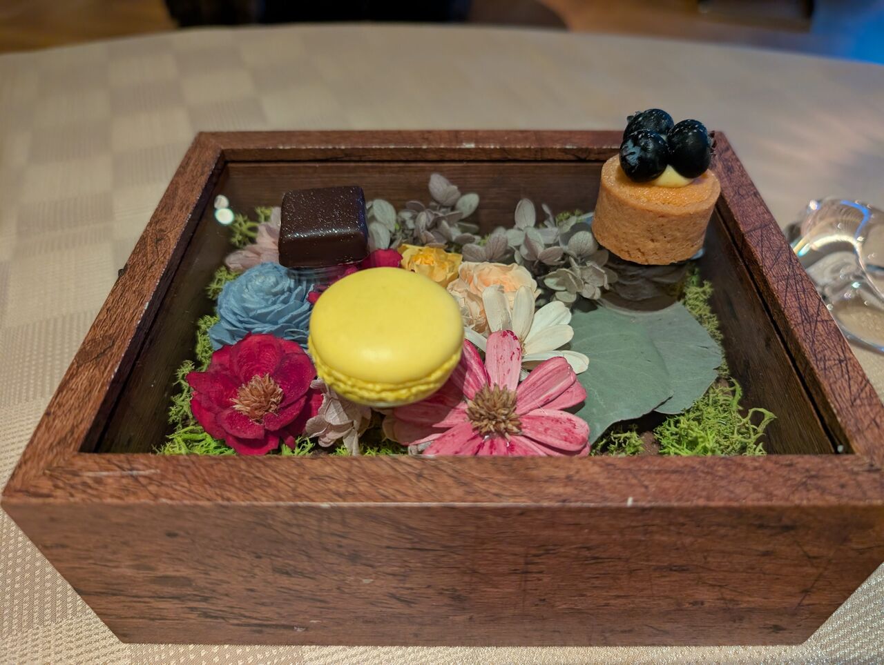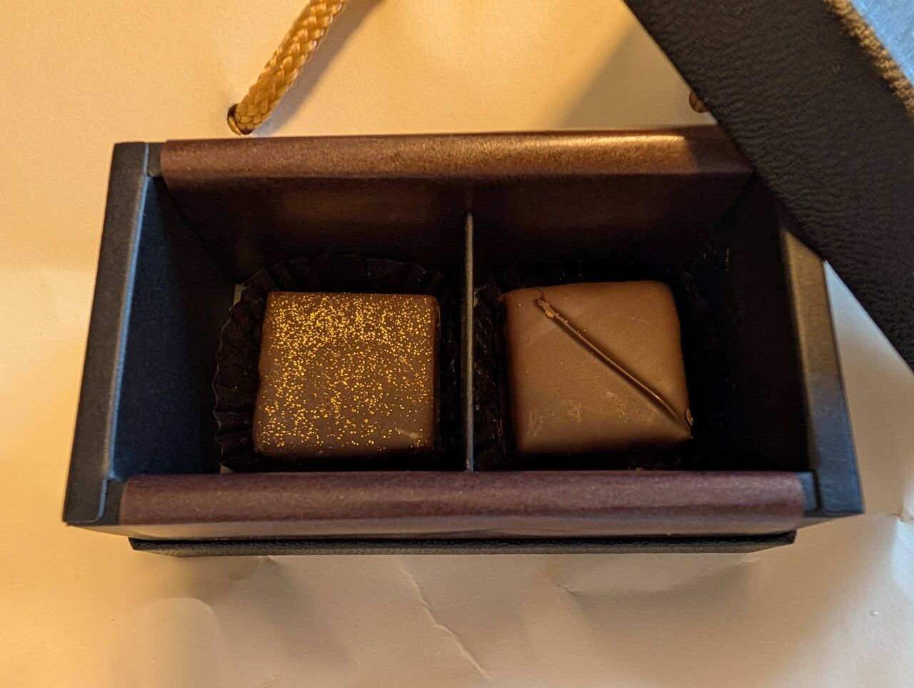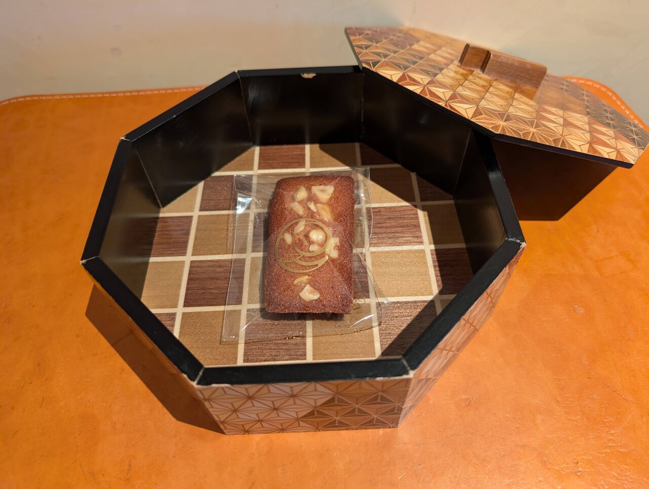 箱根寄木細工の箱に入っていたのは、部屋菓子のフィナンシェ。