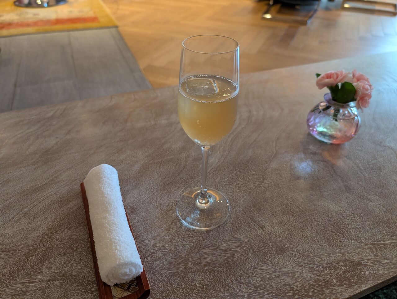 初めにラウンジの席に案内されます。ピアノのBGMが流れる空間です。