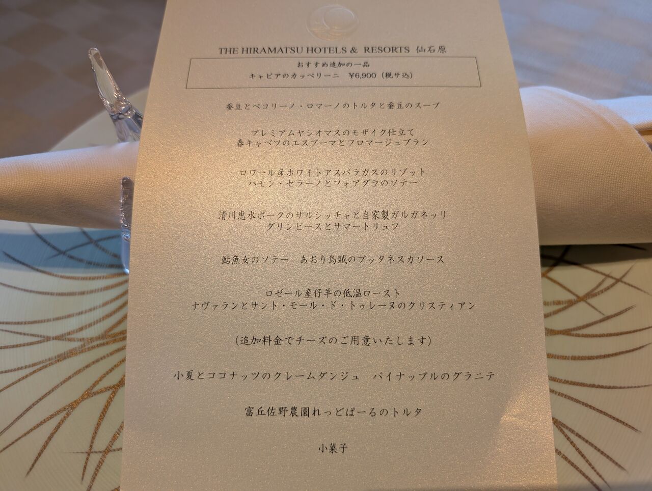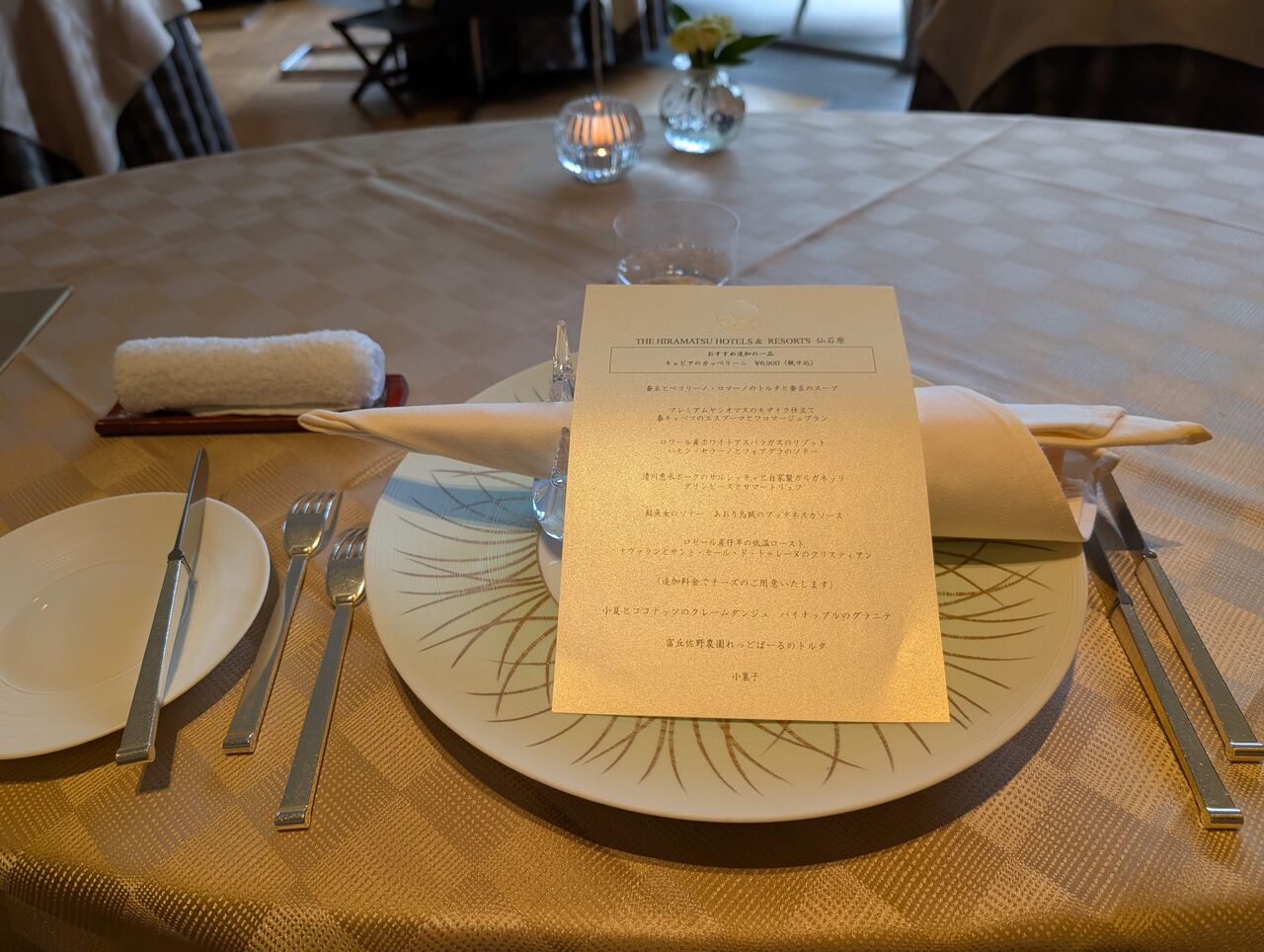 ひらまつ仙石原の夕食は、完全に高級レストランの洋食。