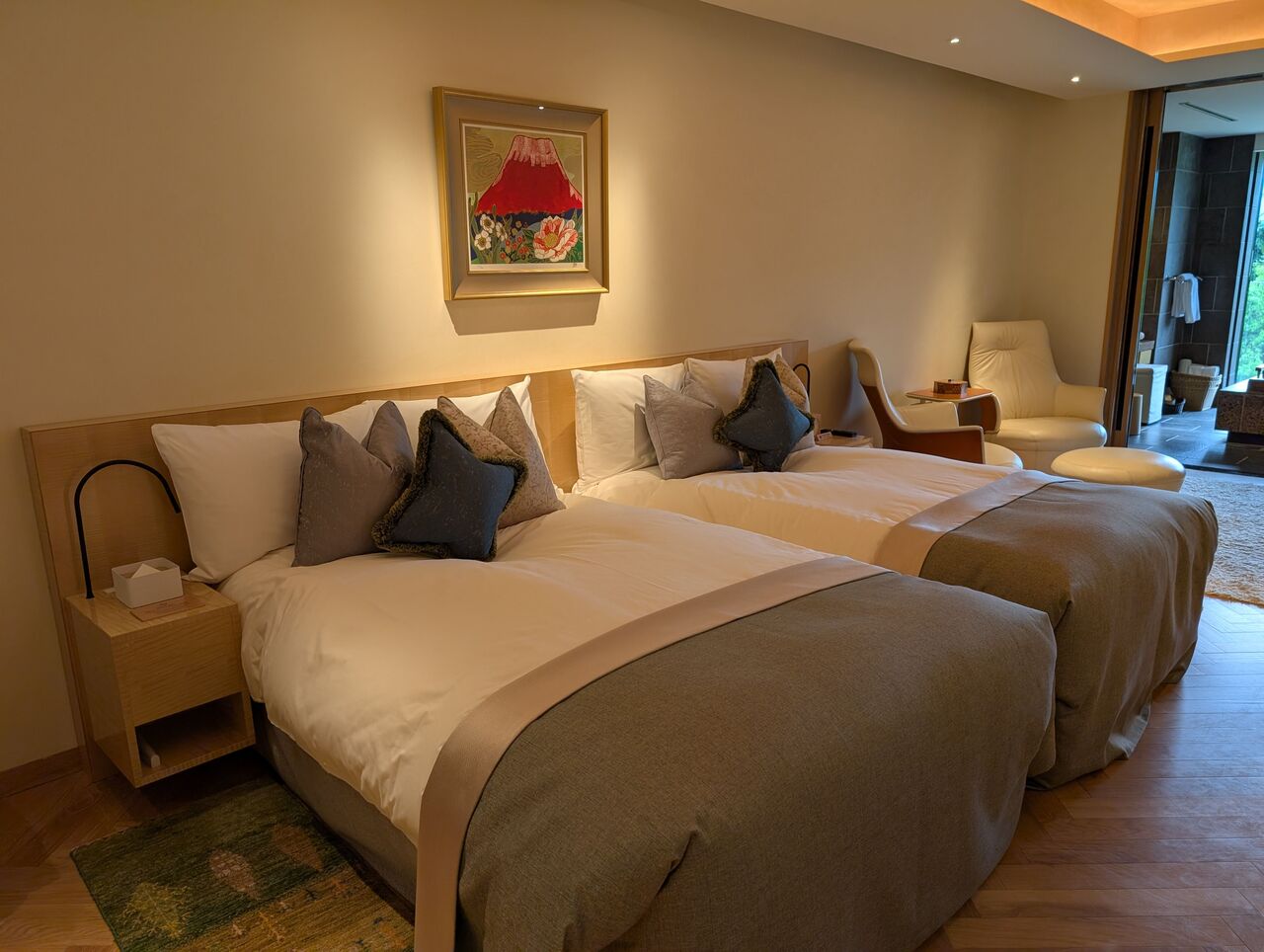 ひらまつ仙石原に、バーなどの施設はありませんので、早めにベッドにもぐりこみます。