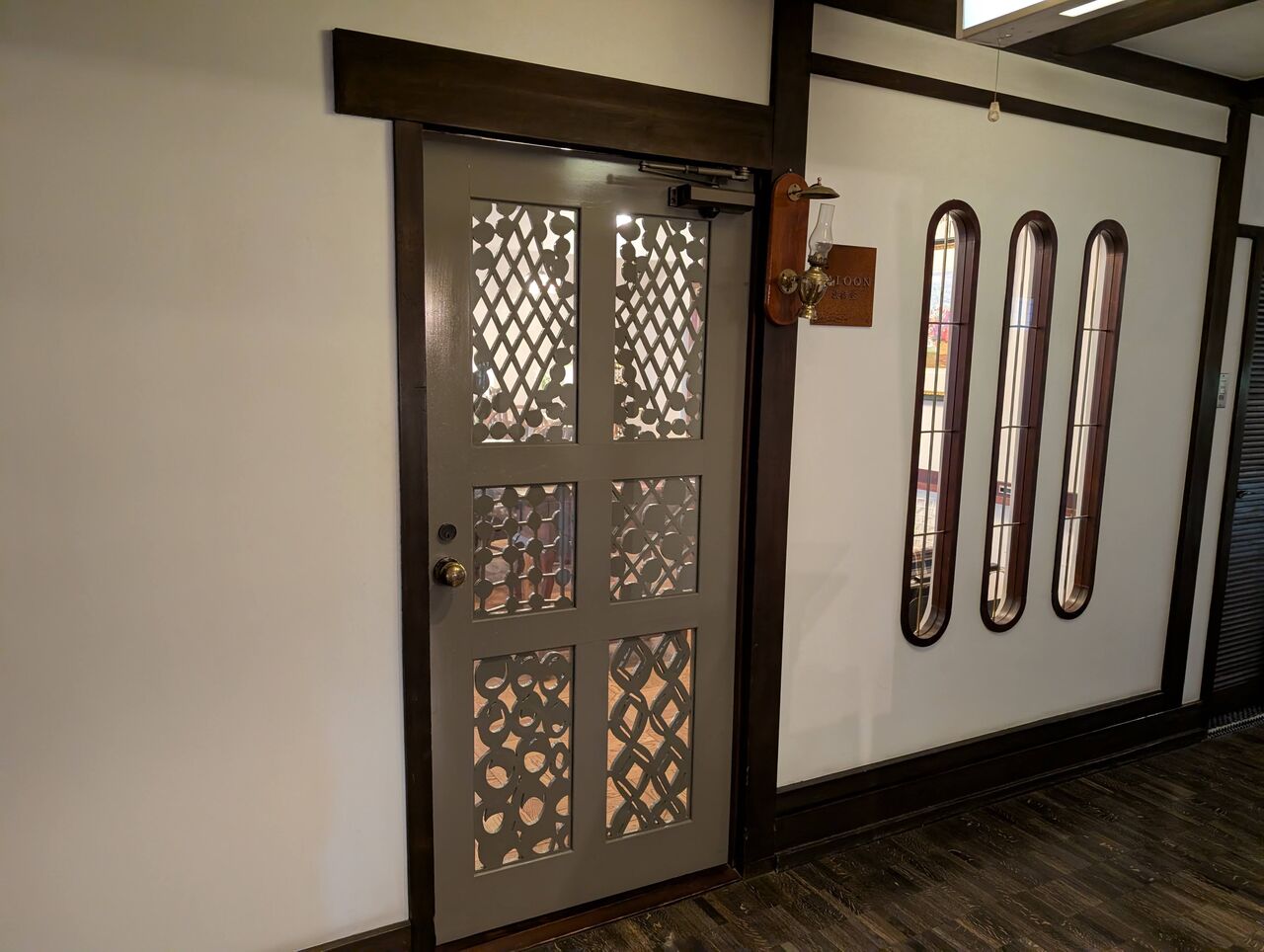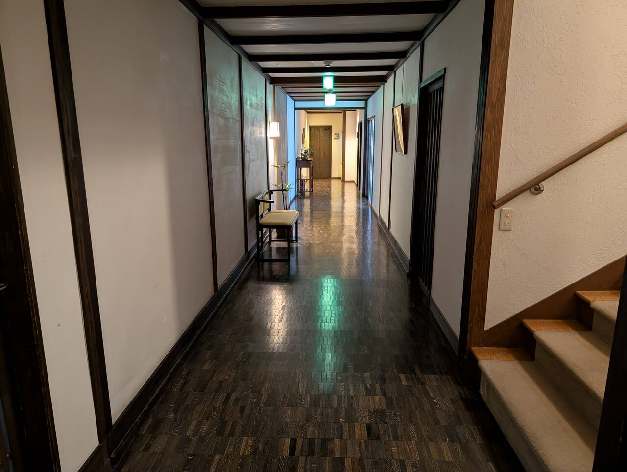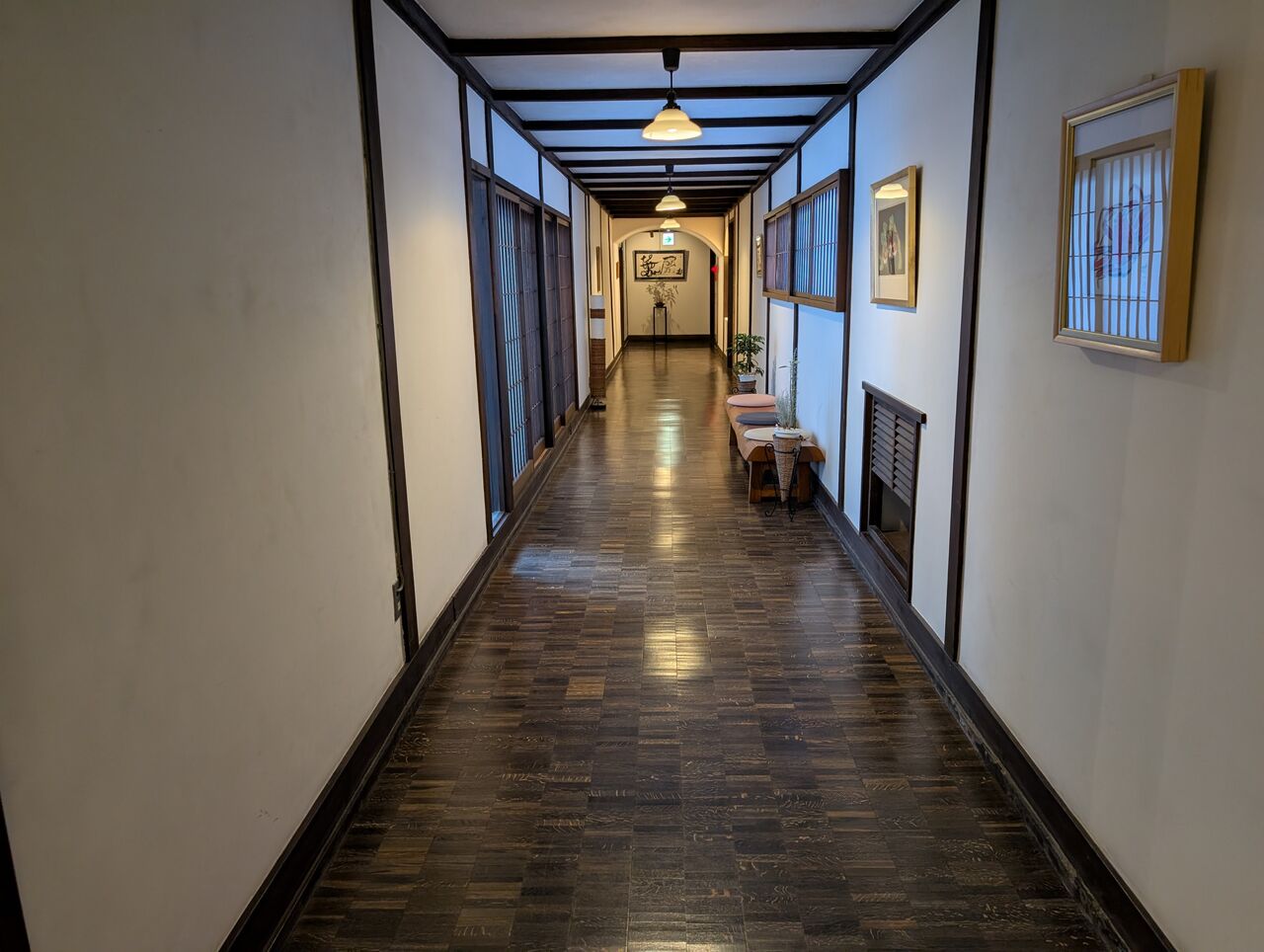 時代を感じさせる天井の低い廊下ですが、全く不快さはありません。