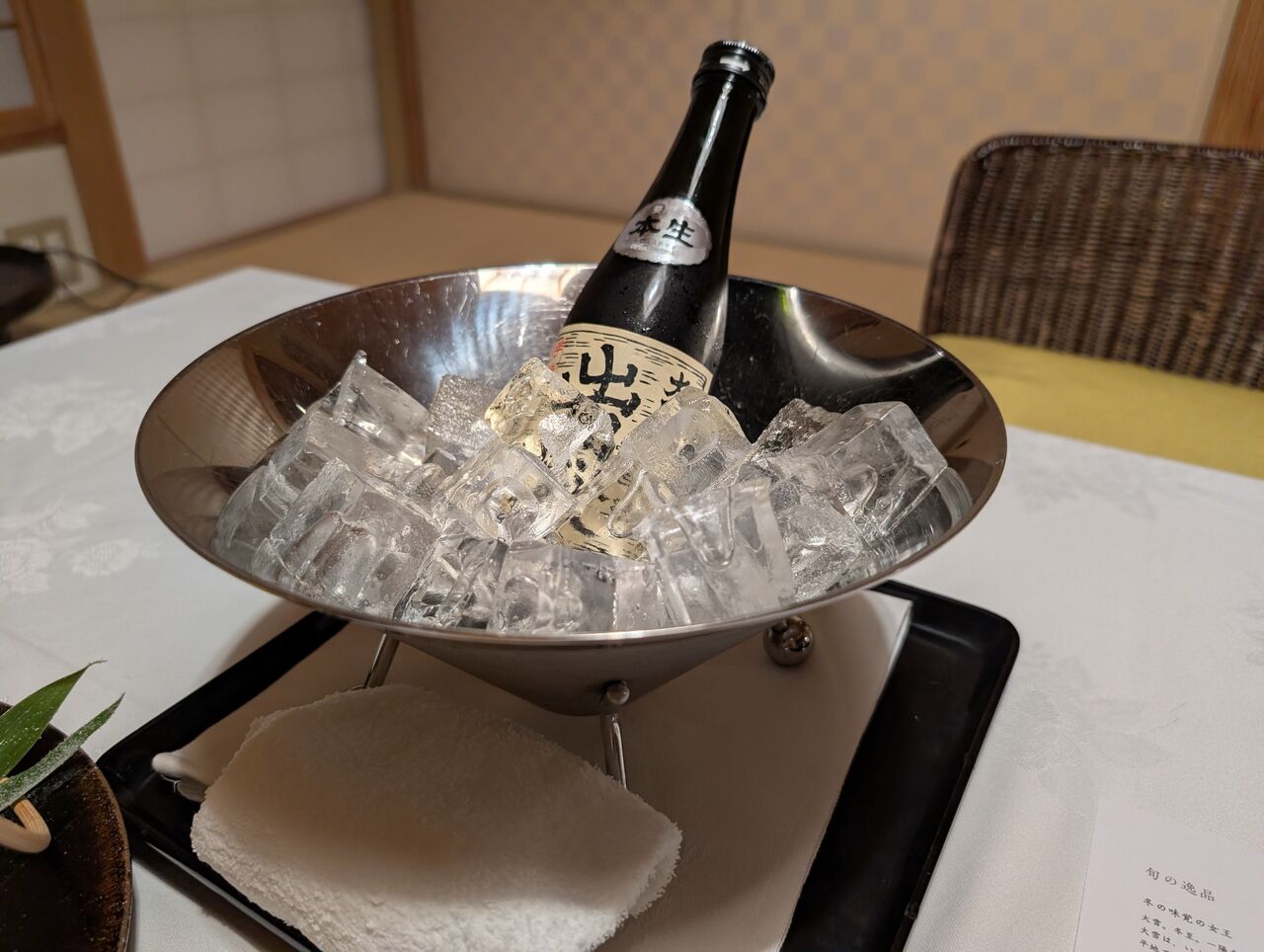 5分前に仲居さんが部屋のドアをノック。準備に入ってきます。