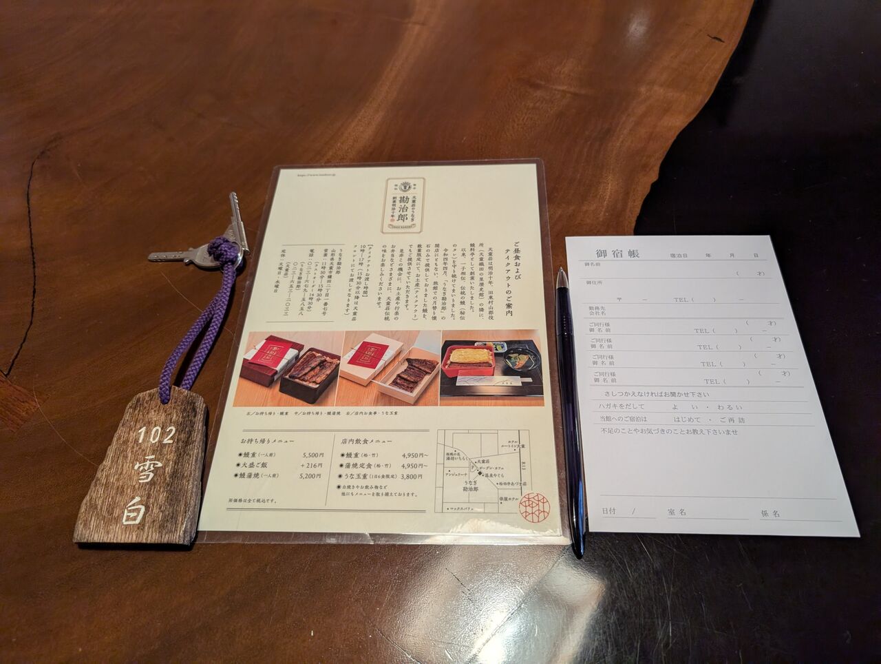 宿帳は部屋にて。滞在中に記入して置いておきます。