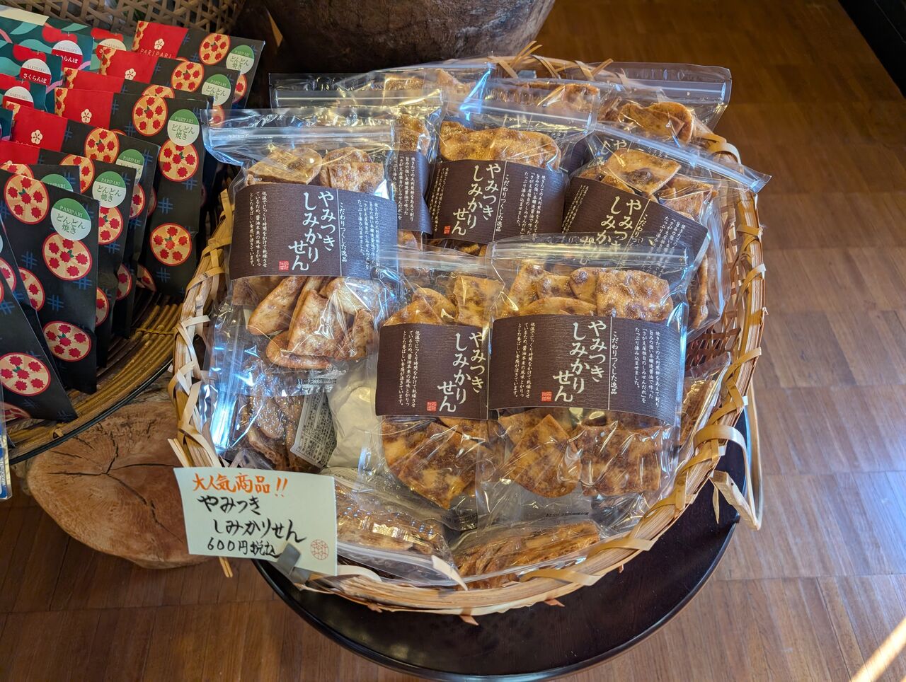 お茶菓子は、まんじゅうとそば板。