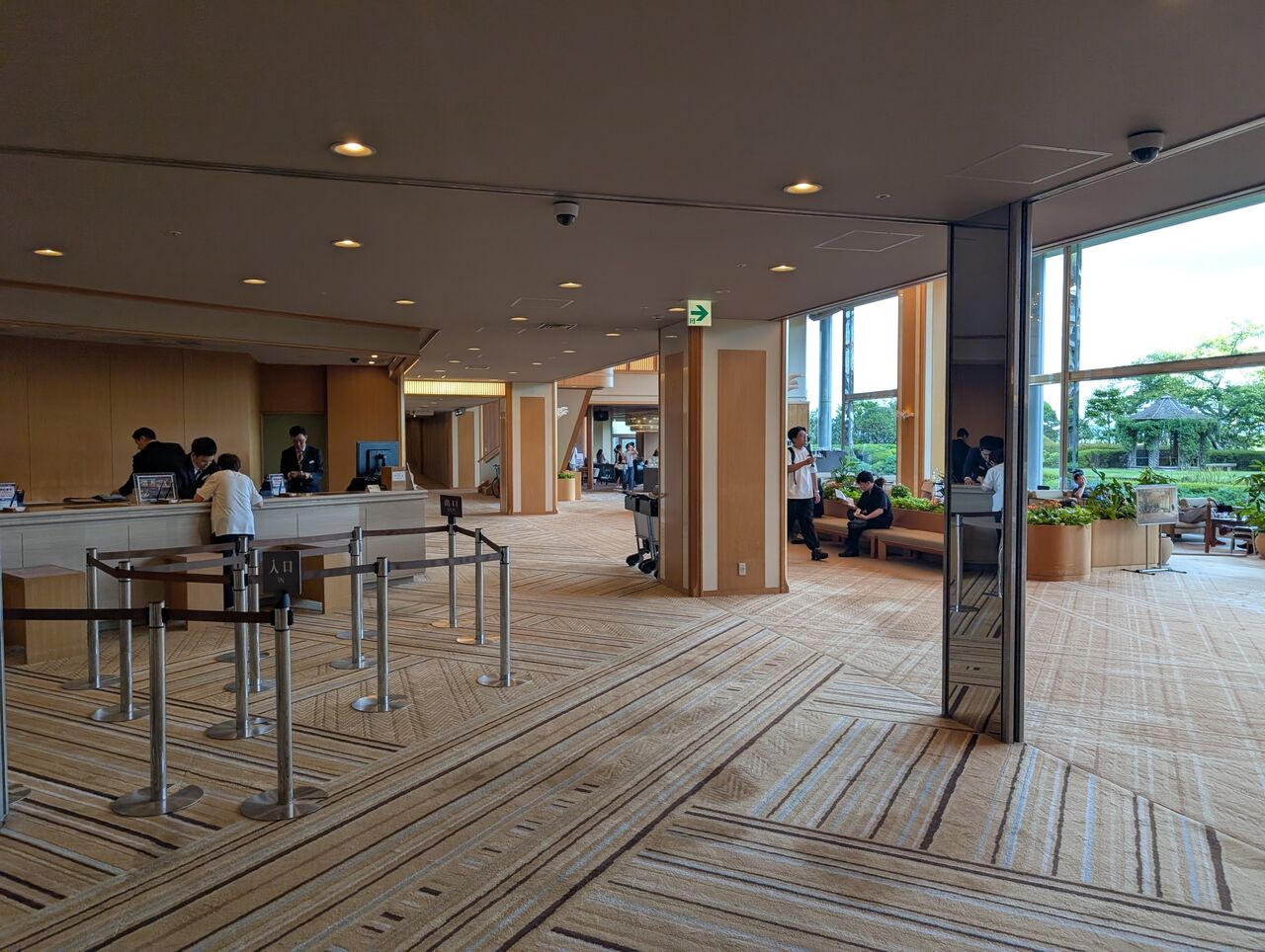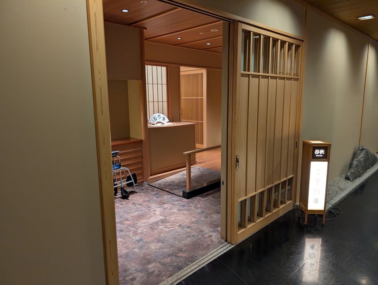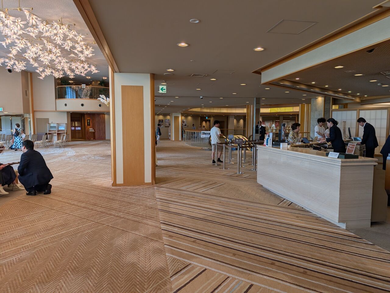 玄関では和装の仲居さんが一人でひっきりなしで到着する客をお出迎え。