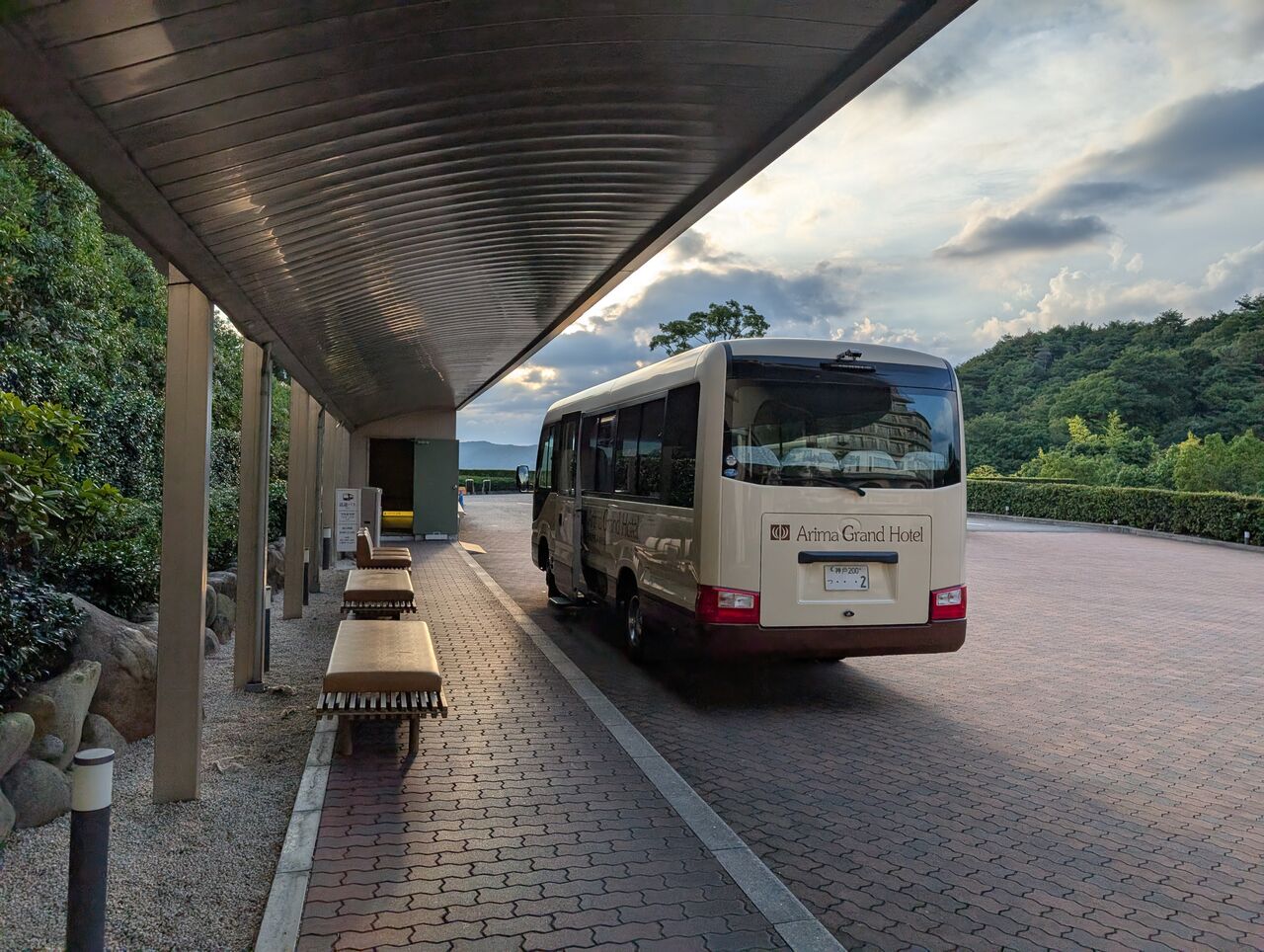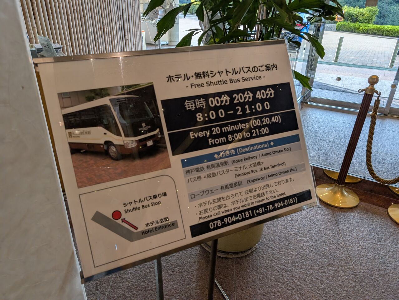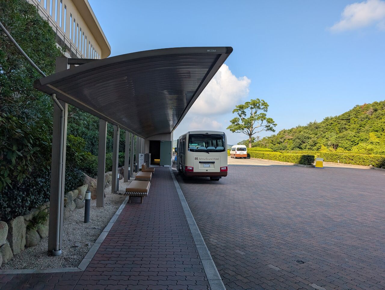 有馬グランドホテルは高台の上にあるため、送迎バスが走っています。有馬温泉駅からは約500mの距離ですが、急坂の上りなので、とても歩いてはいけません。