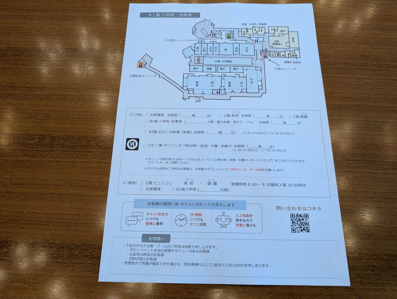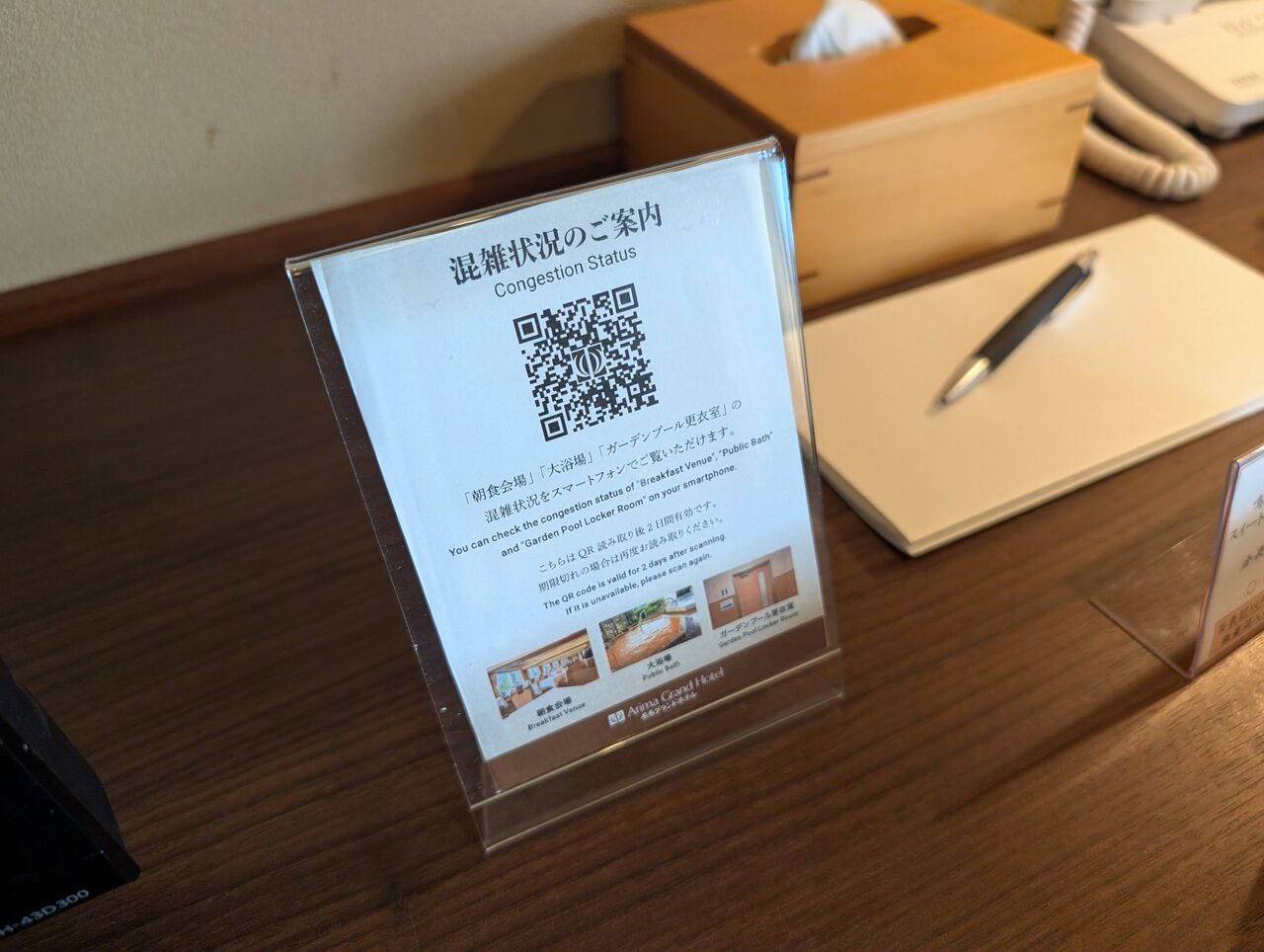 大浴場の混雑状況は、QRコードから参照することができます。