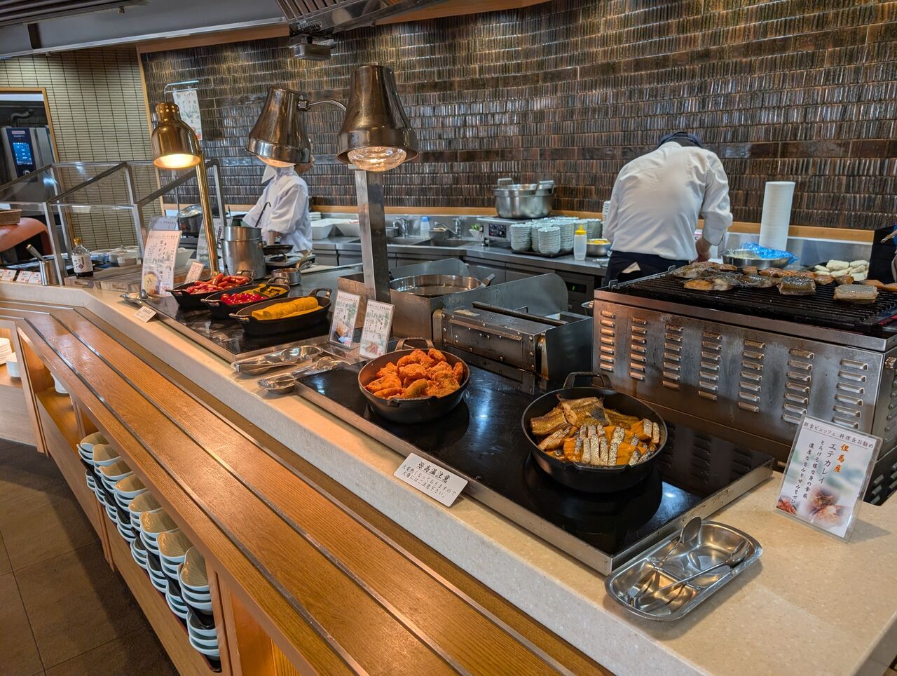 会場に入れば、ライブ調理のあるブッフェライン。