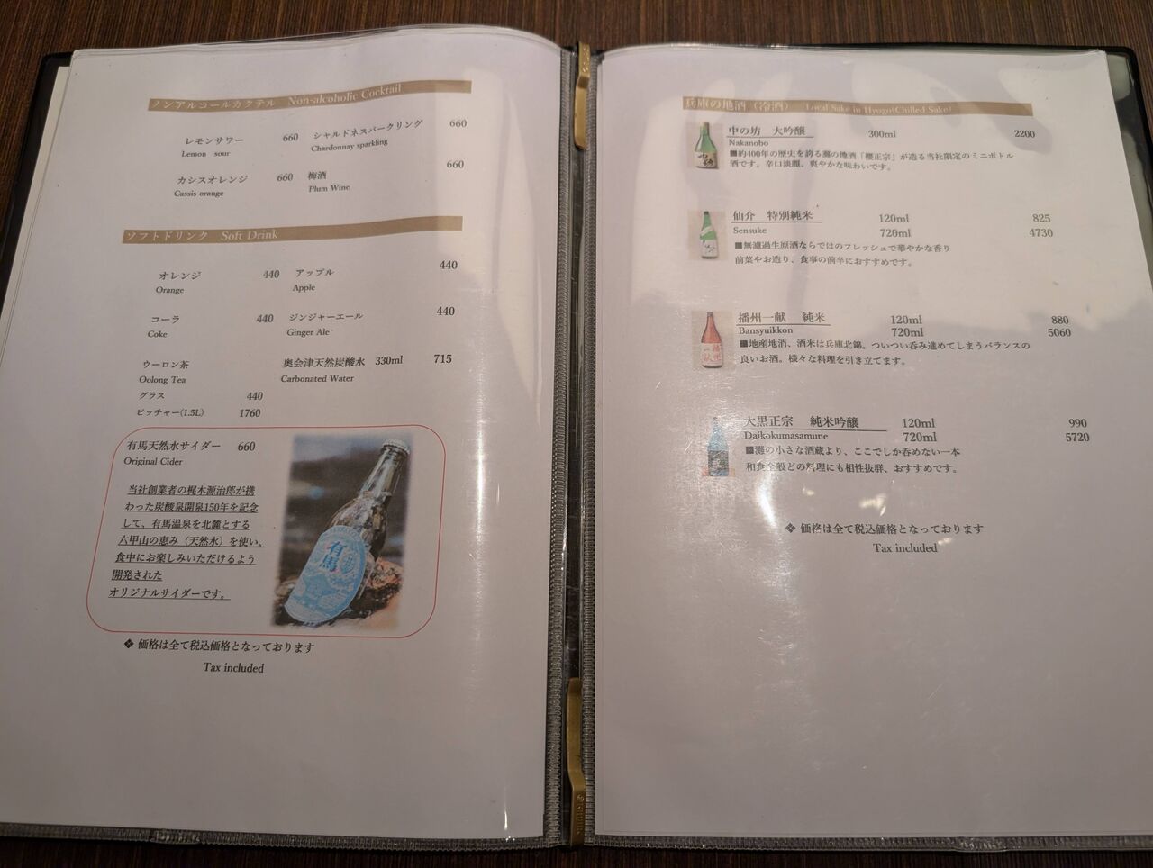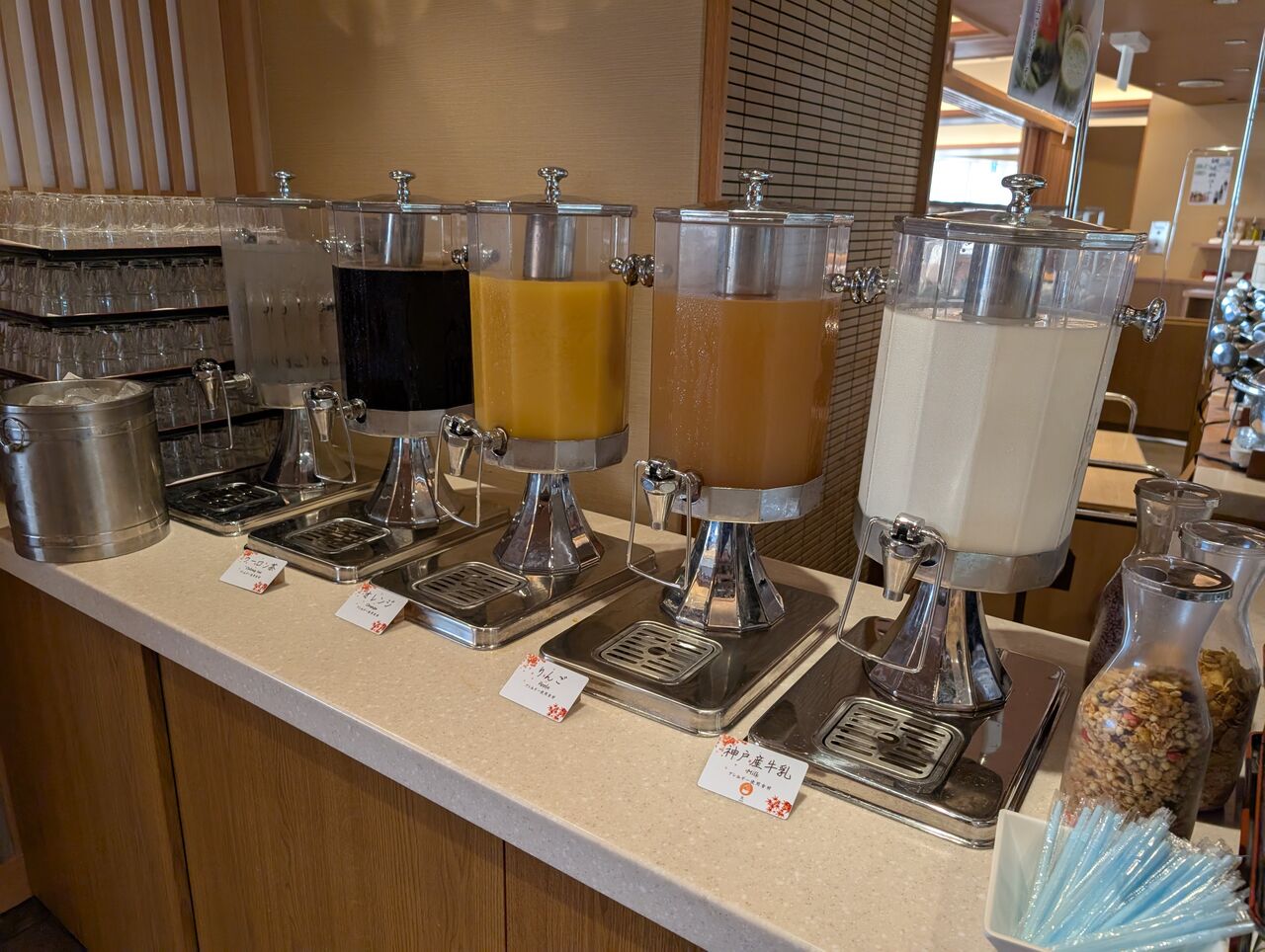 ウーロン茶、オレンジジュース、りんごジュース、神戸産牛乳