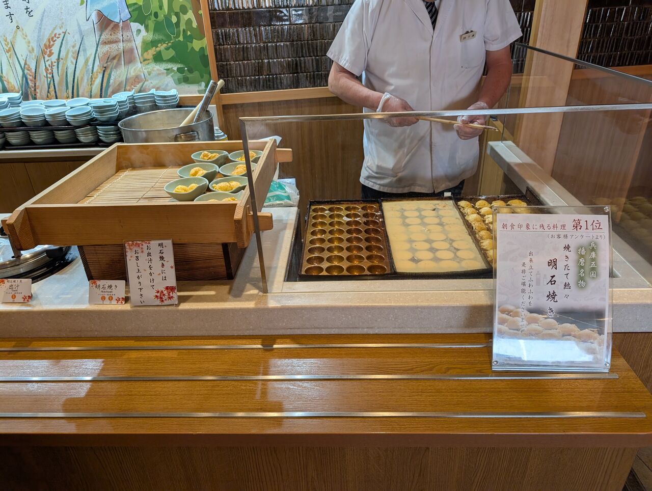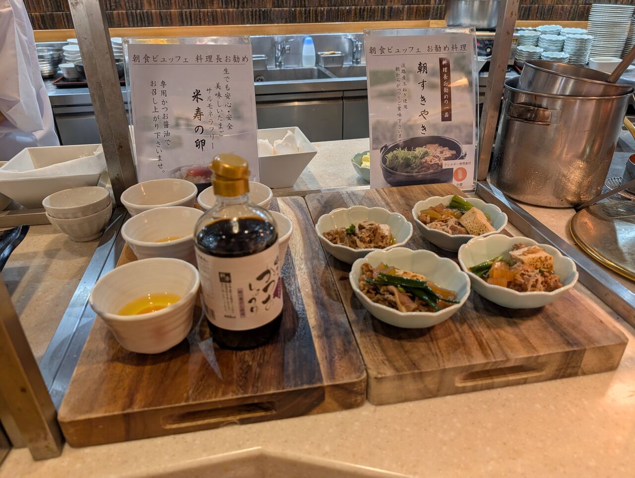 明石焼き、朝すき焼き、米寿の卵、海鮮丼