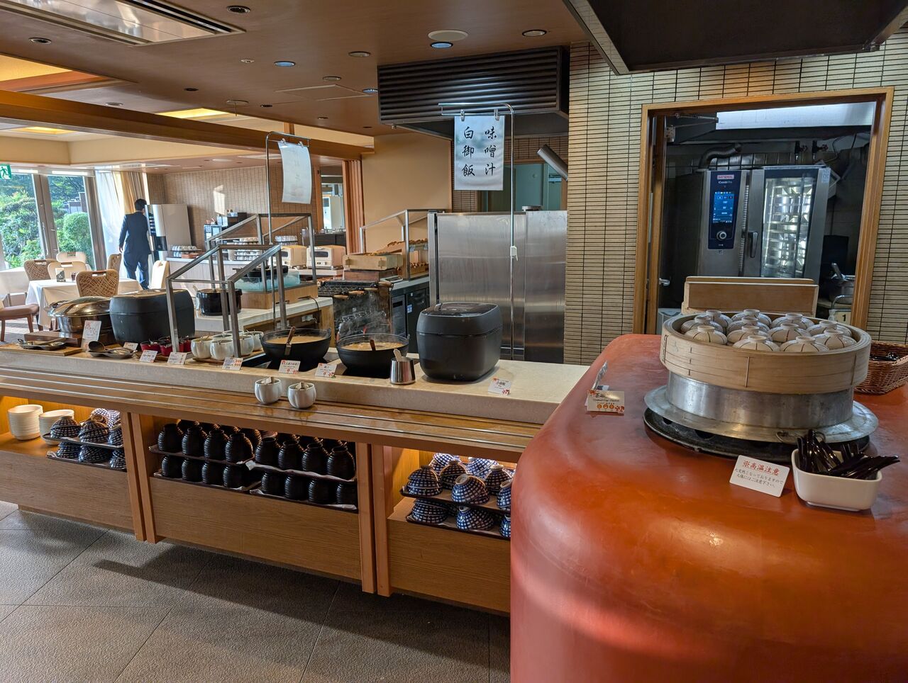 朝食会場はこちら、2階朱初(あけそめ)。
