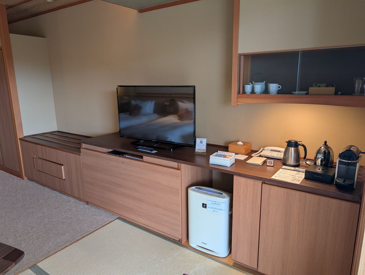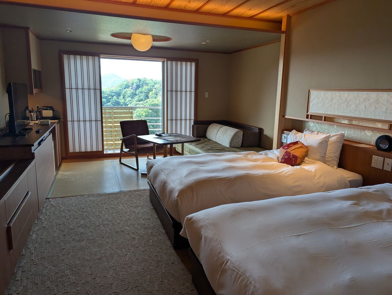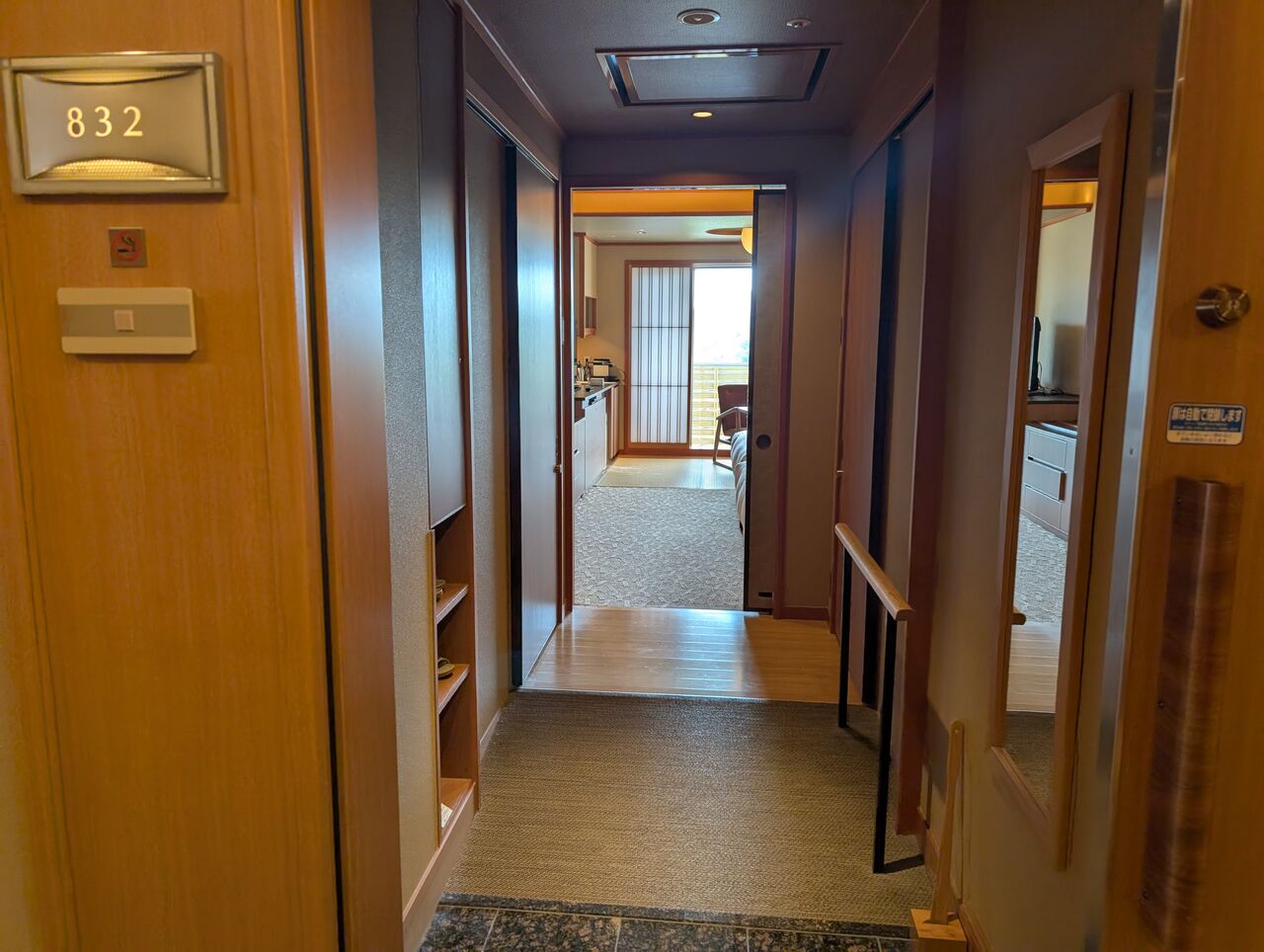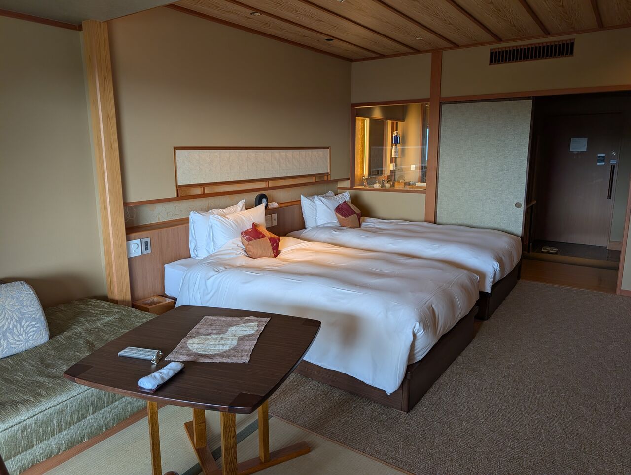フロントにベルを渡して、作務衣の男性スタッフの先導で部屋に案内されます。