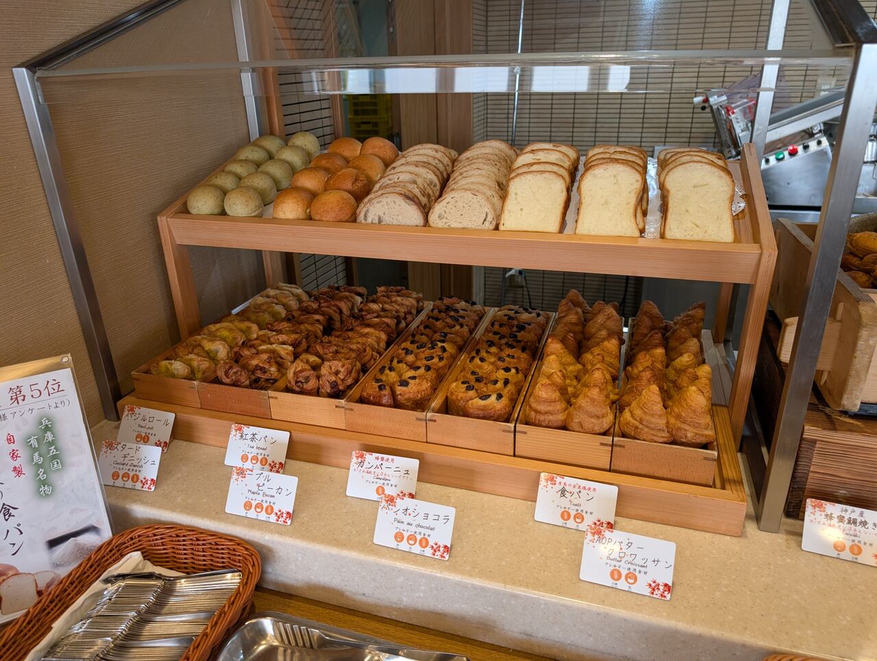 パン(バジルロール、紅茶パン、カンパーニュ、食パン、カスタードデニッシュ、メープルピーカン、パンオショコラ、AOPバタークロワッサン)