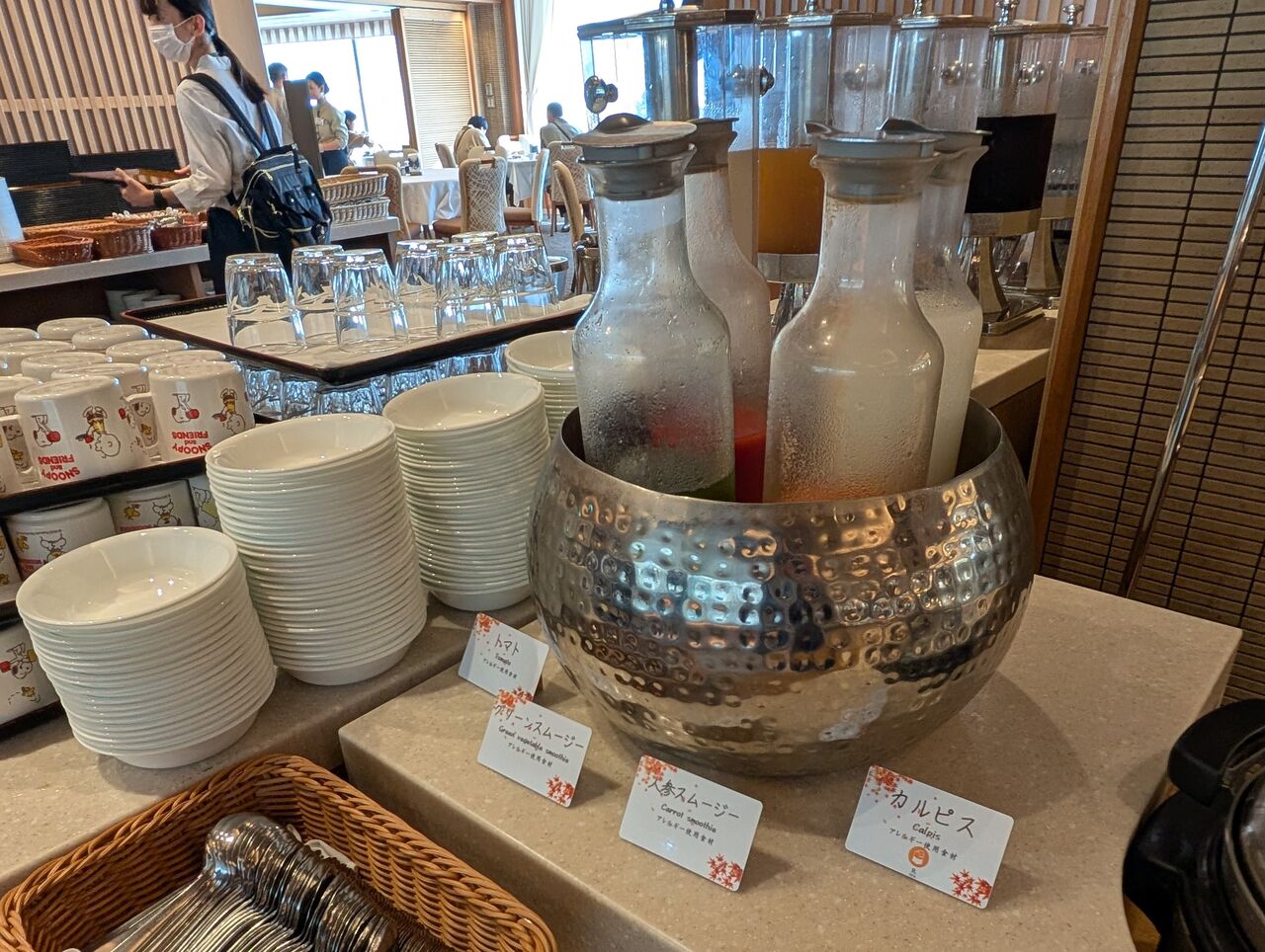ドリンク(トマト、グリーンスムージー、人参スムージー、カルピス)