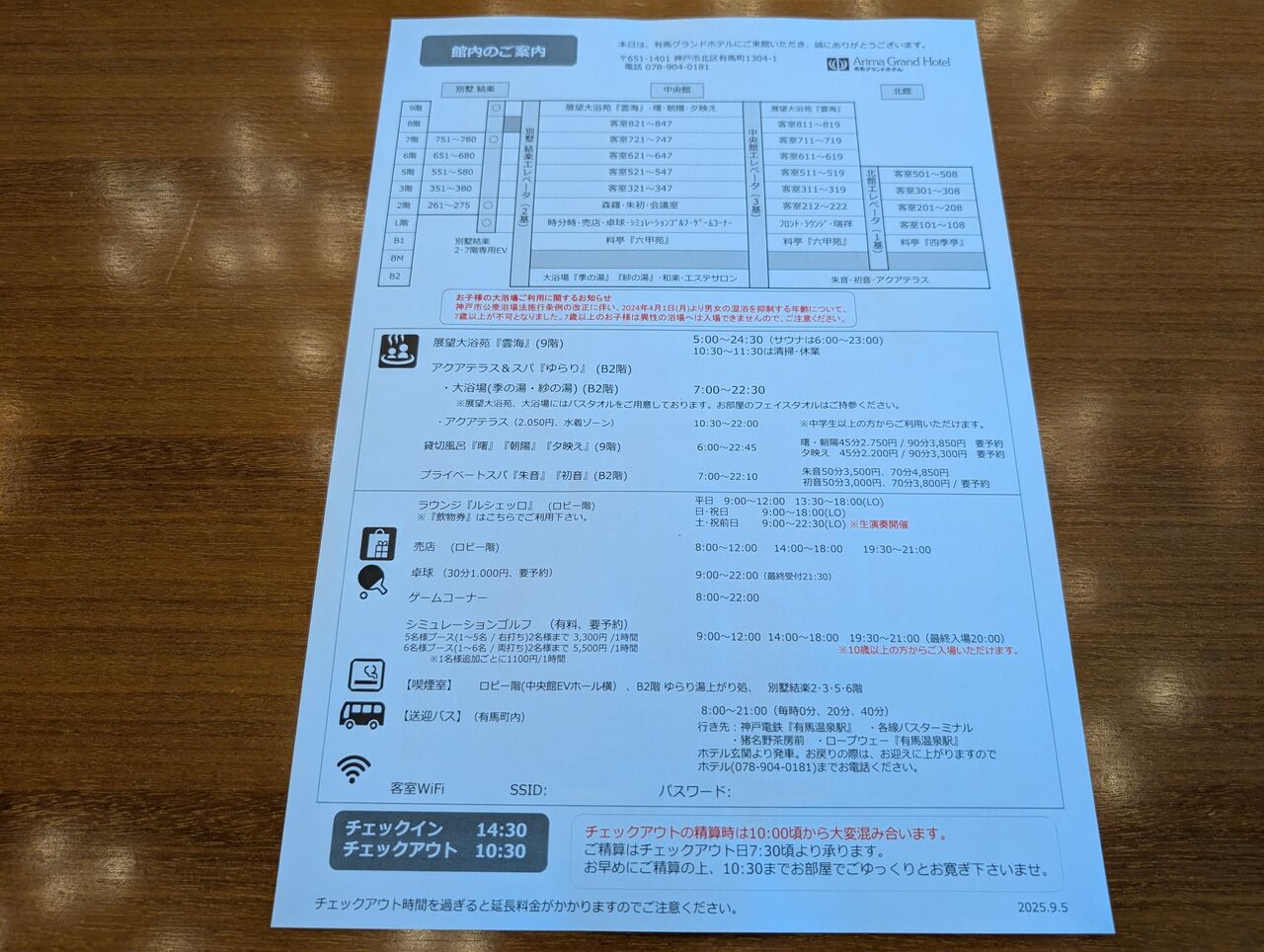 有馬グランドホテルの館内図。