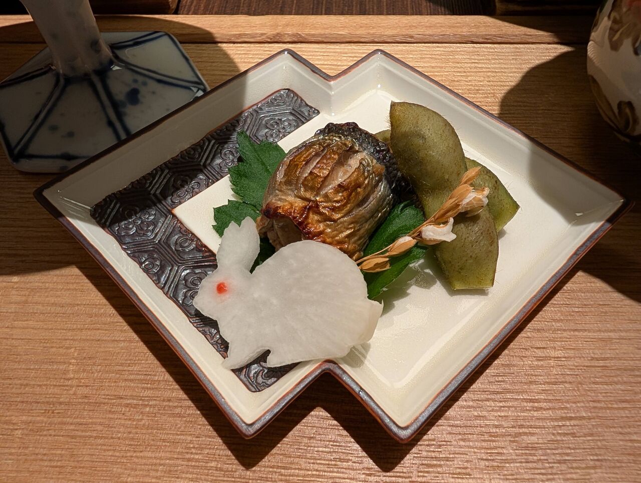 エテカレイ、ハモフライ、出し巻き、カボチャ、ミニトマト、グリルソーセージ、イベリコ豚のベーコン
