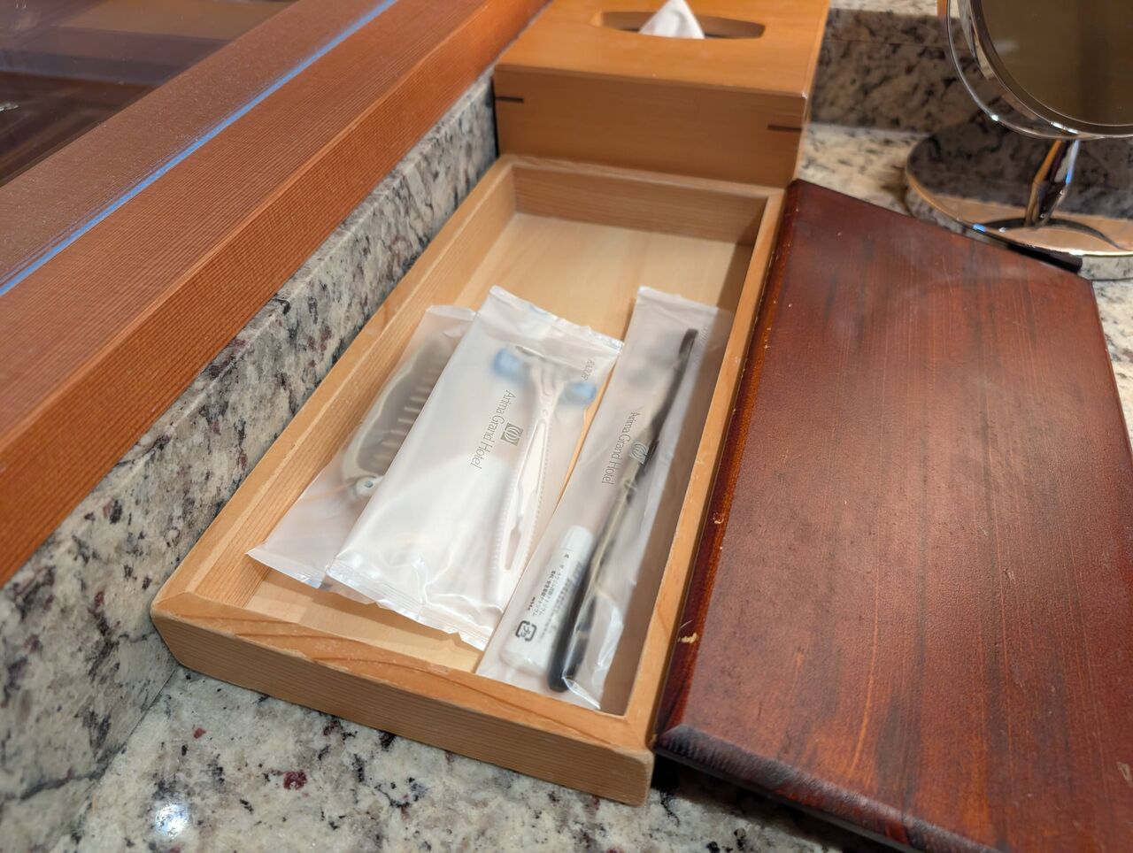 アメニティは木箱の中に。